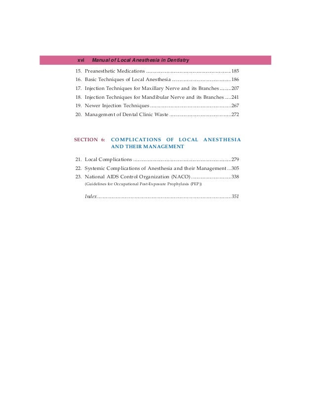 However, if complications occur, the dentist should know how best to manage them. In this review the most common complications are presented. The preventive measures as well as treatment possibilities are also shortly described. In this review we present the most common peroperative and postoperative complications in local anaesthesia, as well as preventive measures and treatment possibilities. Peroperative complications.